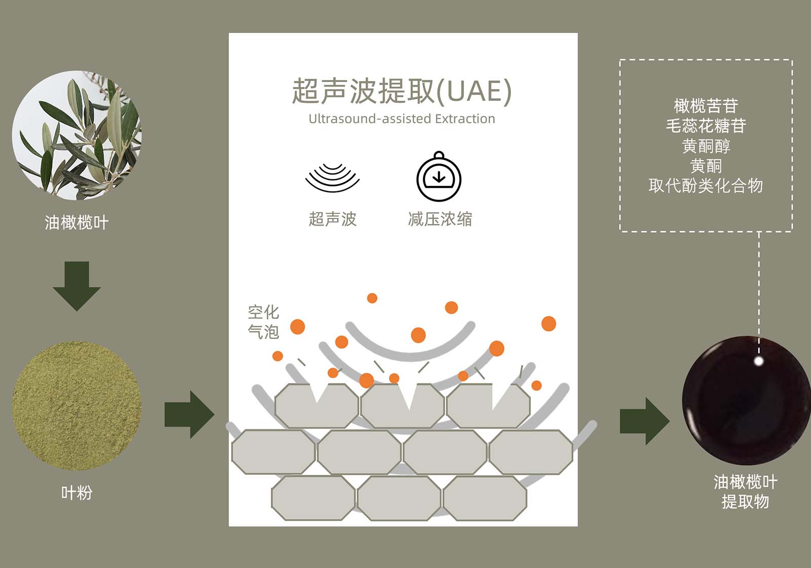 油橄榄叶提取物 UV.fobioTM OLE-G 公众号文章:油橄榄叶提取物UV.fobioTM OLE-G 油橄榄叶来自甘肃陇南武都 中国最大的油橄榄生产基地 神奇的油橄榄叶 展现植物次生代谢产物的神奇力量 Aqua-Eco-Extraction 绿色,低温,高效,高浓度